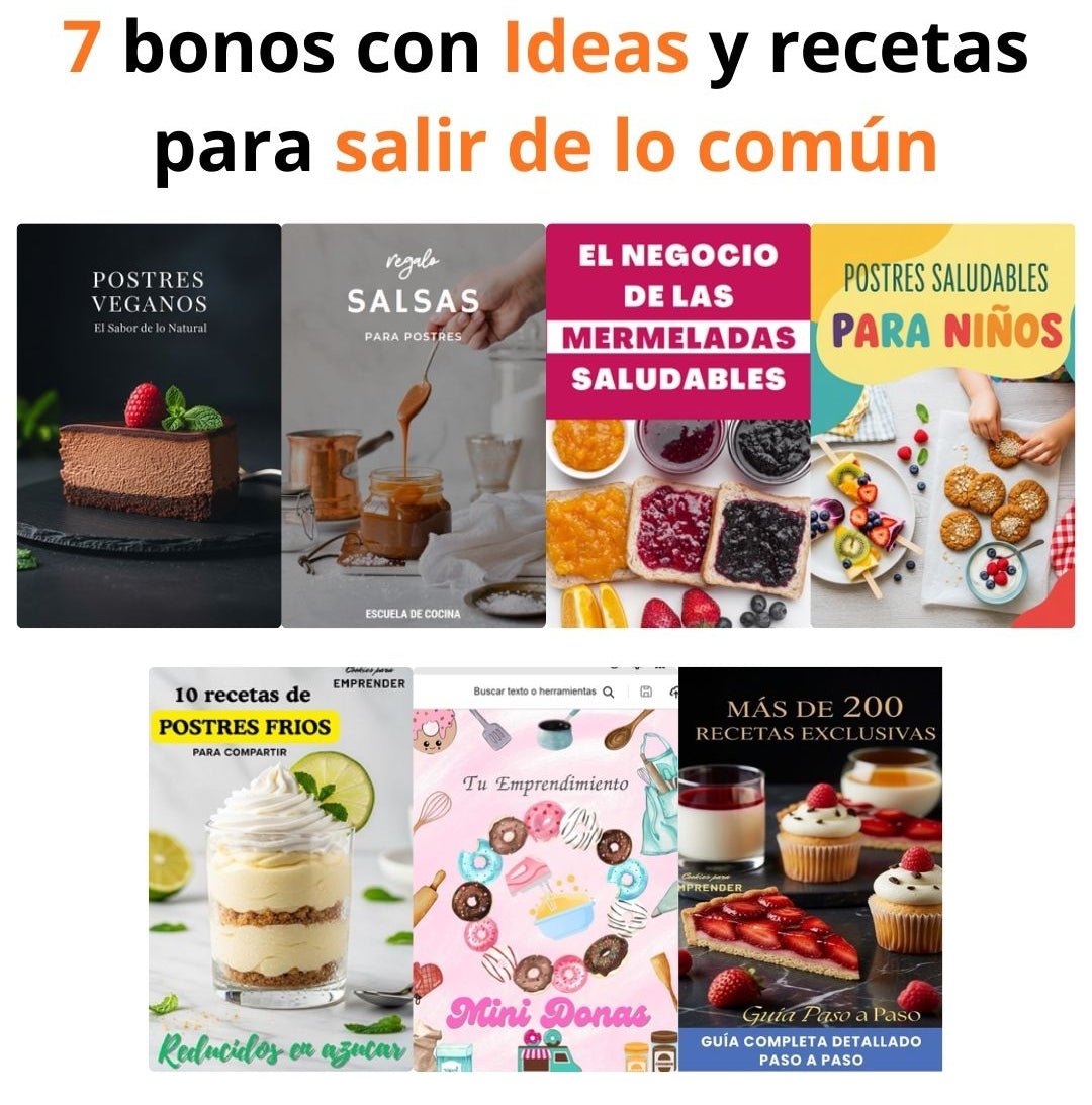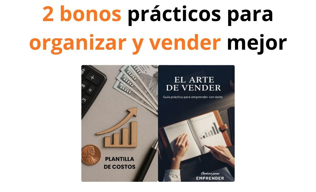 Además de recetas, incluye materiales prácticos para organizarte, poner precios y vender, pensados para emprender desde casa.